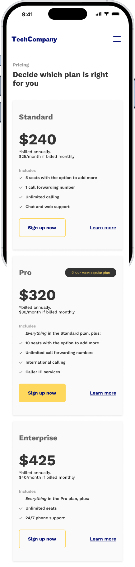 To begin with, I designed the pricing panel to facilitate effortless comparison. I wanted to ensure that the visibility of the most recommended plan was paramount. This was achieved through strategic placement of a prominent call-to-action alongside a distinct textual cue. I highlighted the key disparities through use of bold typography and varied font sizes. The design is highly responsive and will work on any screen size.